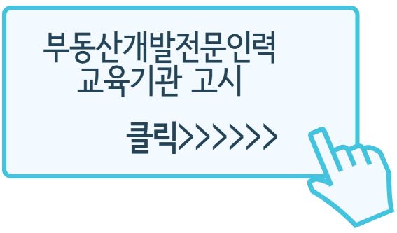 부동산 개발전문인력 교육기관은 현재 4곳에서만 진행된다. 관련법령으로는 "부동산개발업의 관리 및 육성에 관한 법률" 제5조(부동산개발 전문인력의 범위와 교육등)이며, 국토부 고시 제2021-898호, 제2022-486호에 교육기간이 지정되어 있다. 지정지간은 2021년 6월 24일 ~ 2023년 06월 23일(2년)이다.