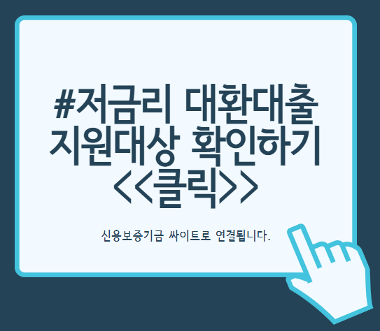 신용보증기금에서 취급하던 저금리로 대환대출이 가능한 "저금리대환 프로그램"이 23년 3월부터 코로나19 피해 자영업자 및 법인소기업에서 모든 자영업자(개인사업자, 법인소기업)로 변경되었습니다. 따라서 7% 이상의 고금리 대출에서 저금리 고정대출로 갈아탈 수 있는 기회가 확대되었으니 많은 신청 바랍니다.