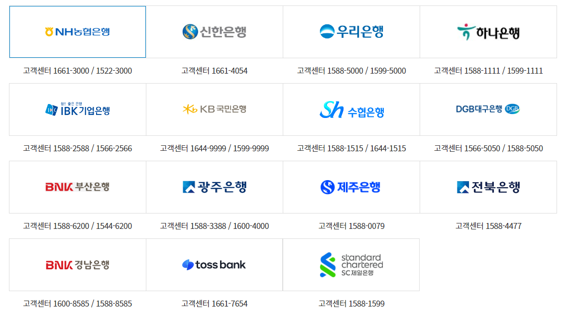 15개 은행에서 취급하며 취급기관은 아래와 같습니다.